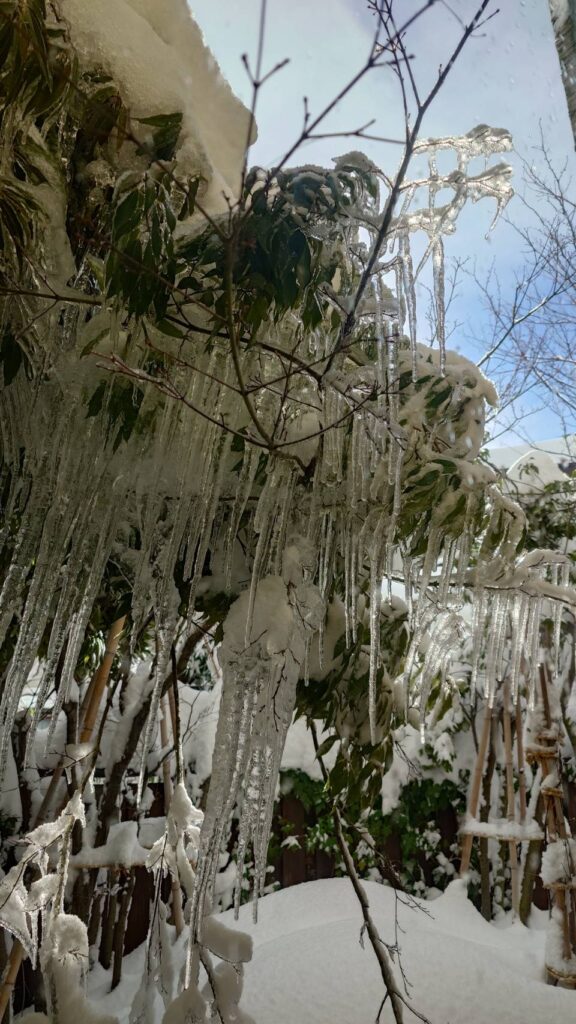 今日、サロンの庭を眺めてみたら、大きなつららが✨